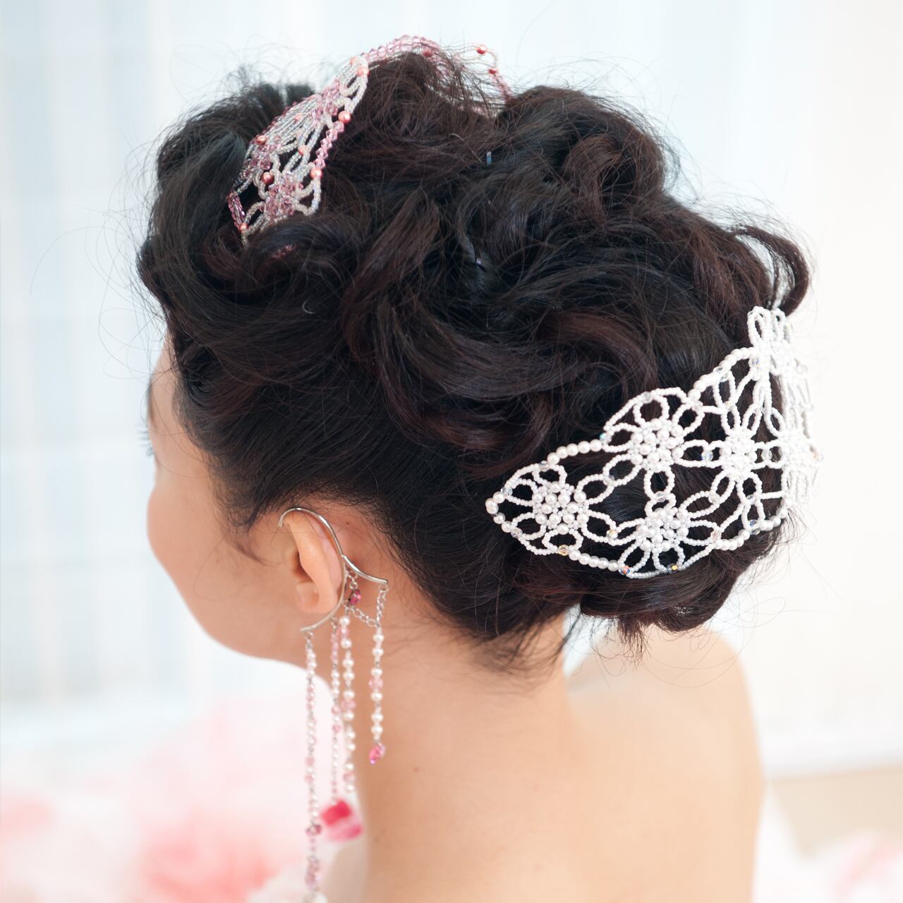 ビーズ&パールデザインにクリスタルを入れたワイヤーのビーズボンネ
