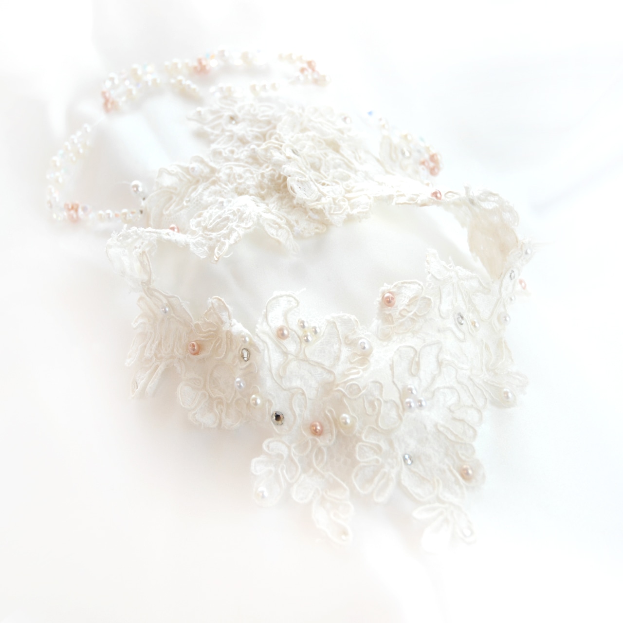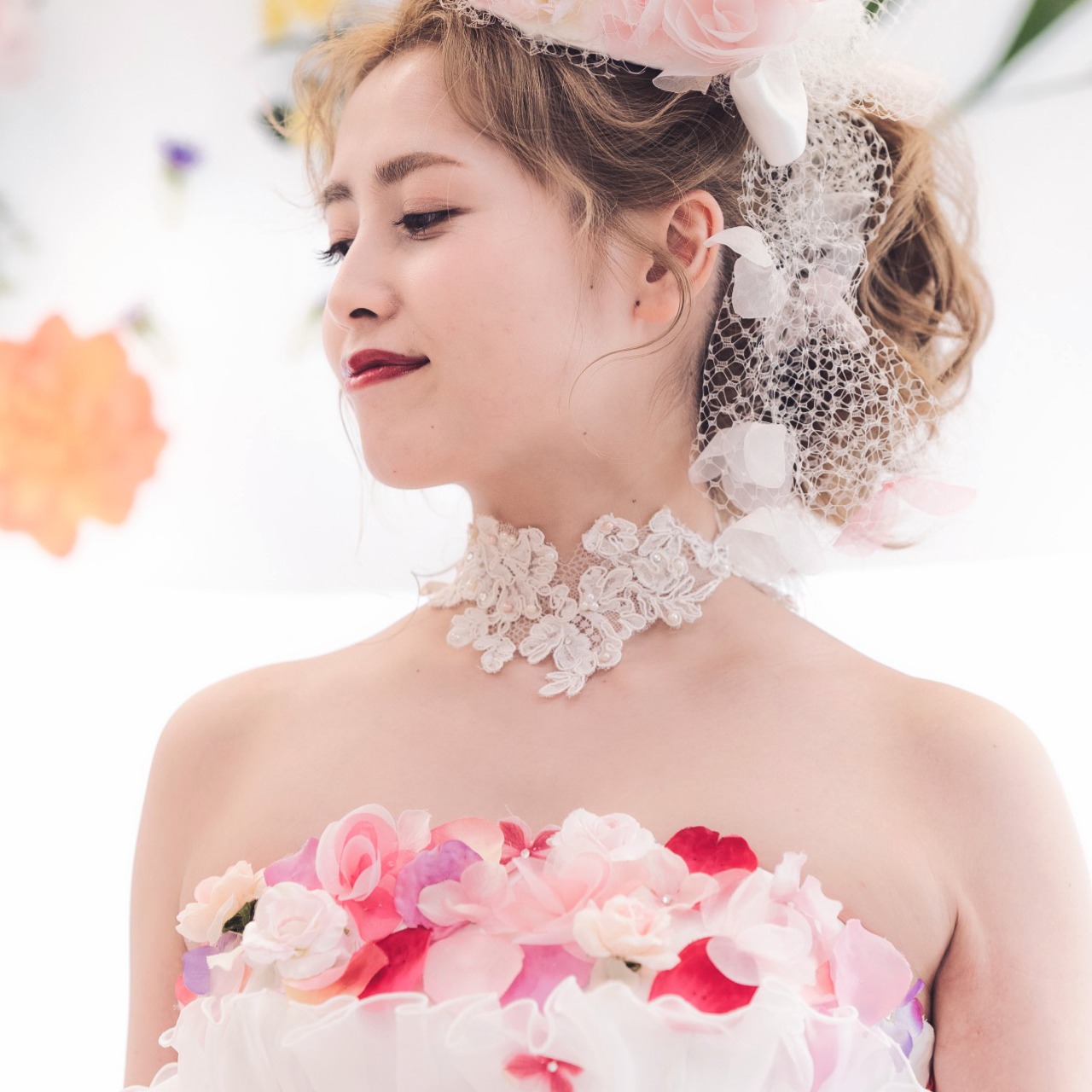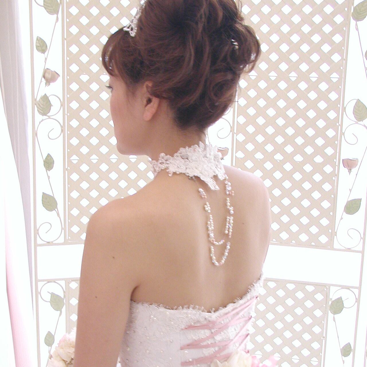 バックスタイルにはビーズのラインがあり、後姿にもアクセントを付けました