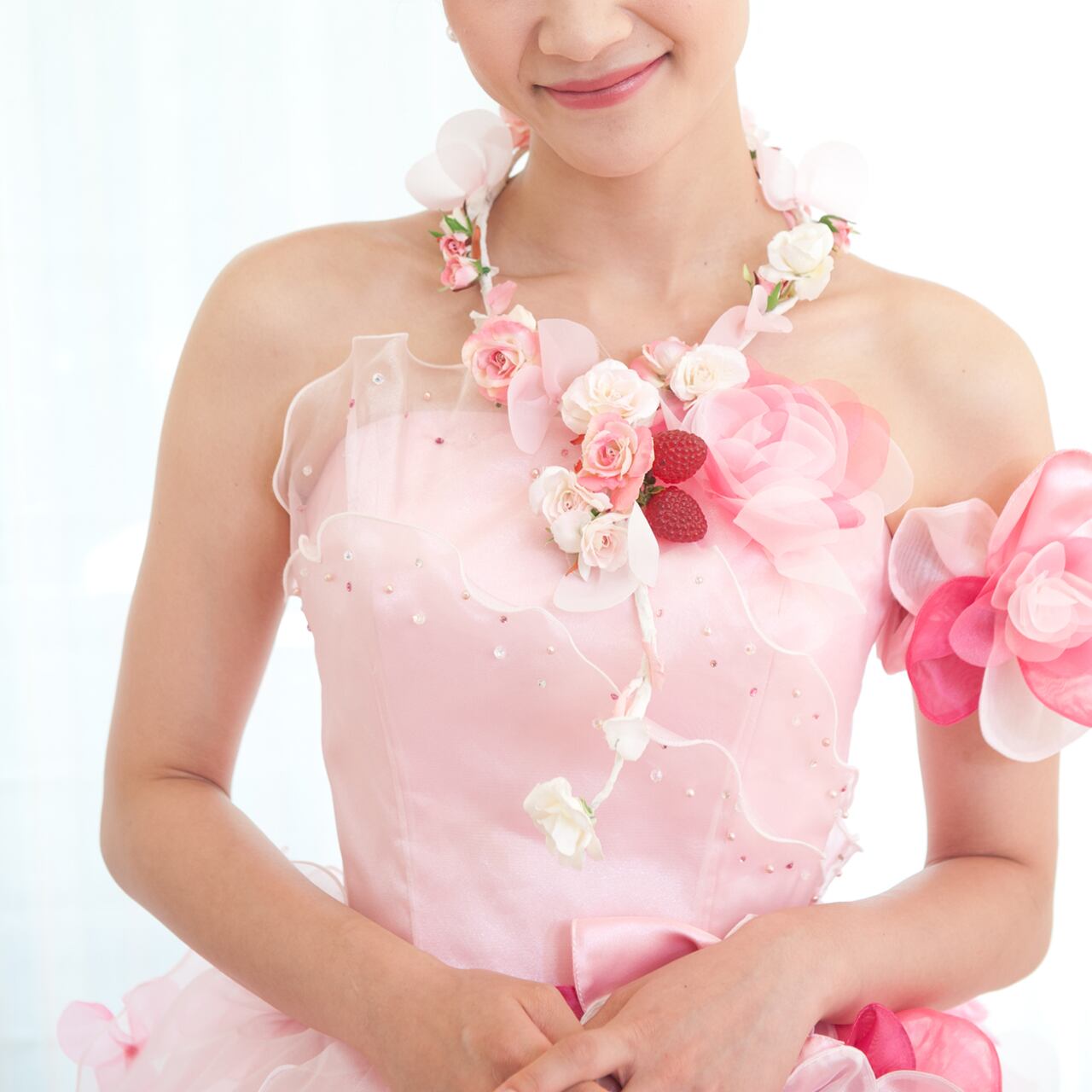 イチゴのようなフルーツパーツがポイントのピンクフラワーの